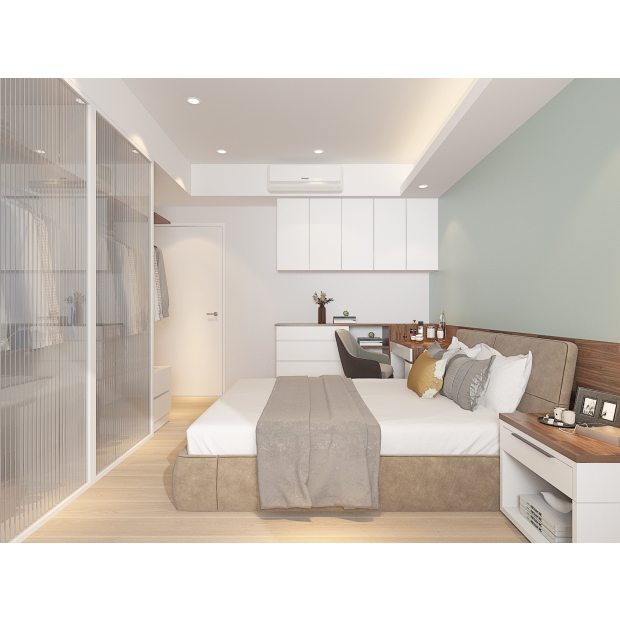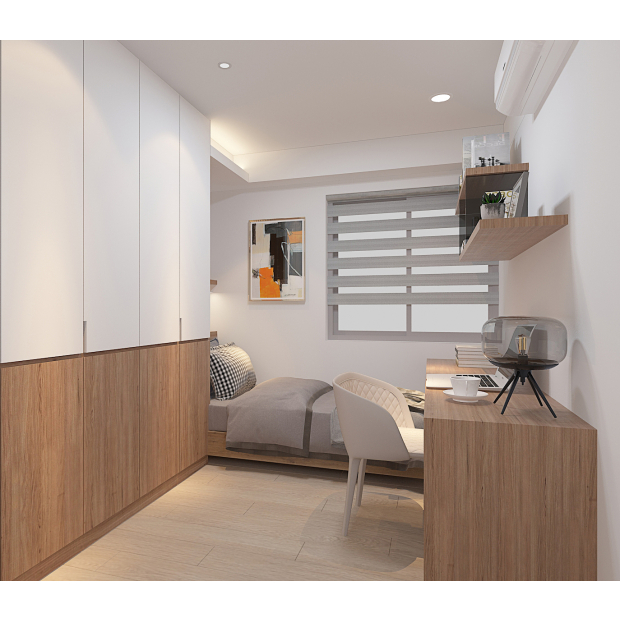 - • 主要建材:木作櫃體、寫真版、造型鋁框門、乳膠漆