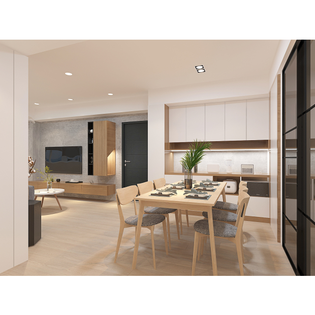本案位於台北市 北投,以北歐風老屋翻新為題,於21.5 坪標準格局中導入明亮、自然與收納機能。 居住成員為大人×2、小孩×2。設計以關渡河岸景致為靈感,將窗景、光線與淺色木質交織, 以俐落線條與耐用材質回應河畔濕氣條件,形塑一家四口的清新日常。